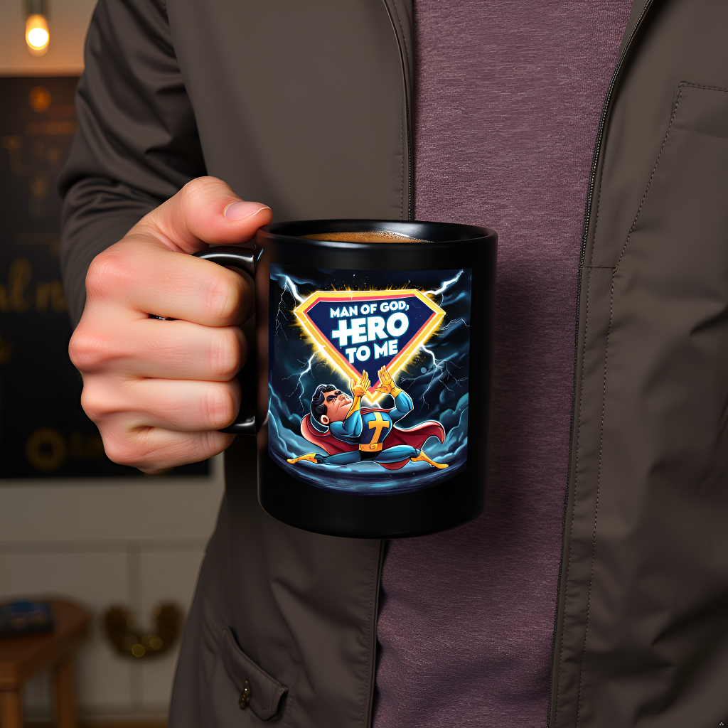 Christian4Life Superhero 11oz Black Mug - "Man of God, Hero to Me" Christian Mug