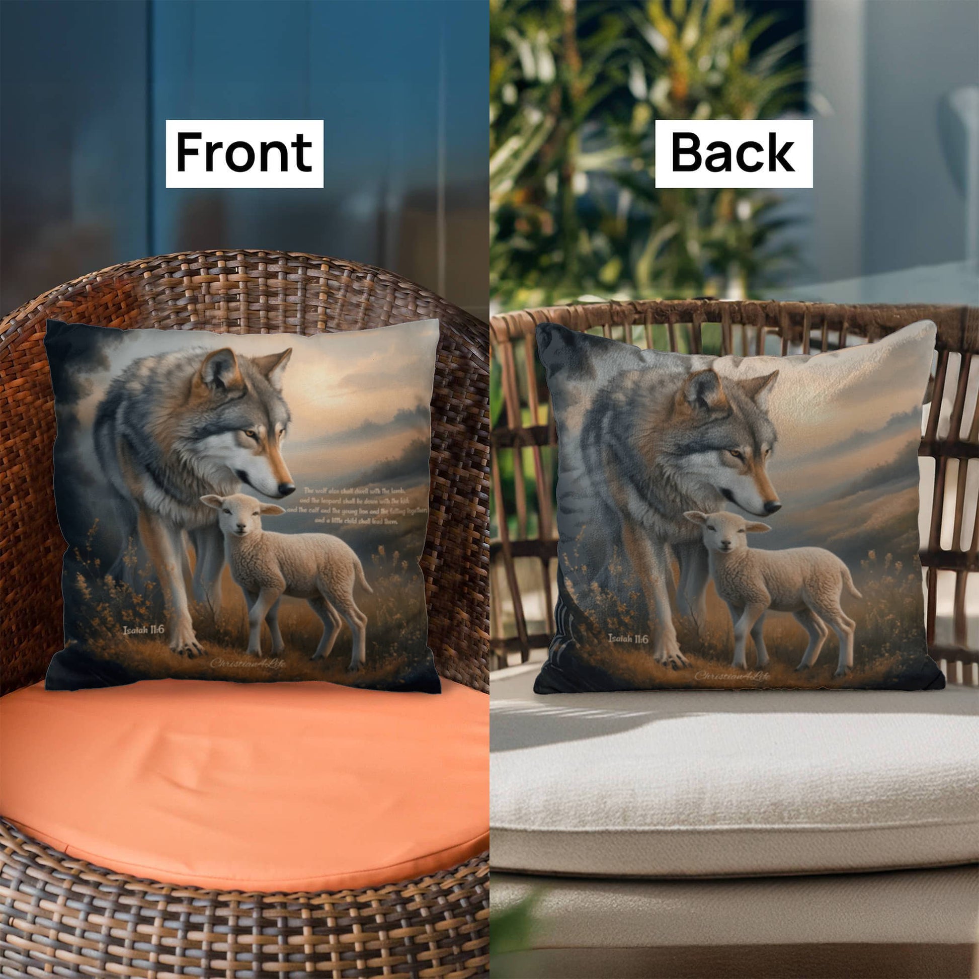 Wolf and Lamb Bible Verse Classic Pillow Isaiah 11:6 Bible quote, KJV (multiple sizes)