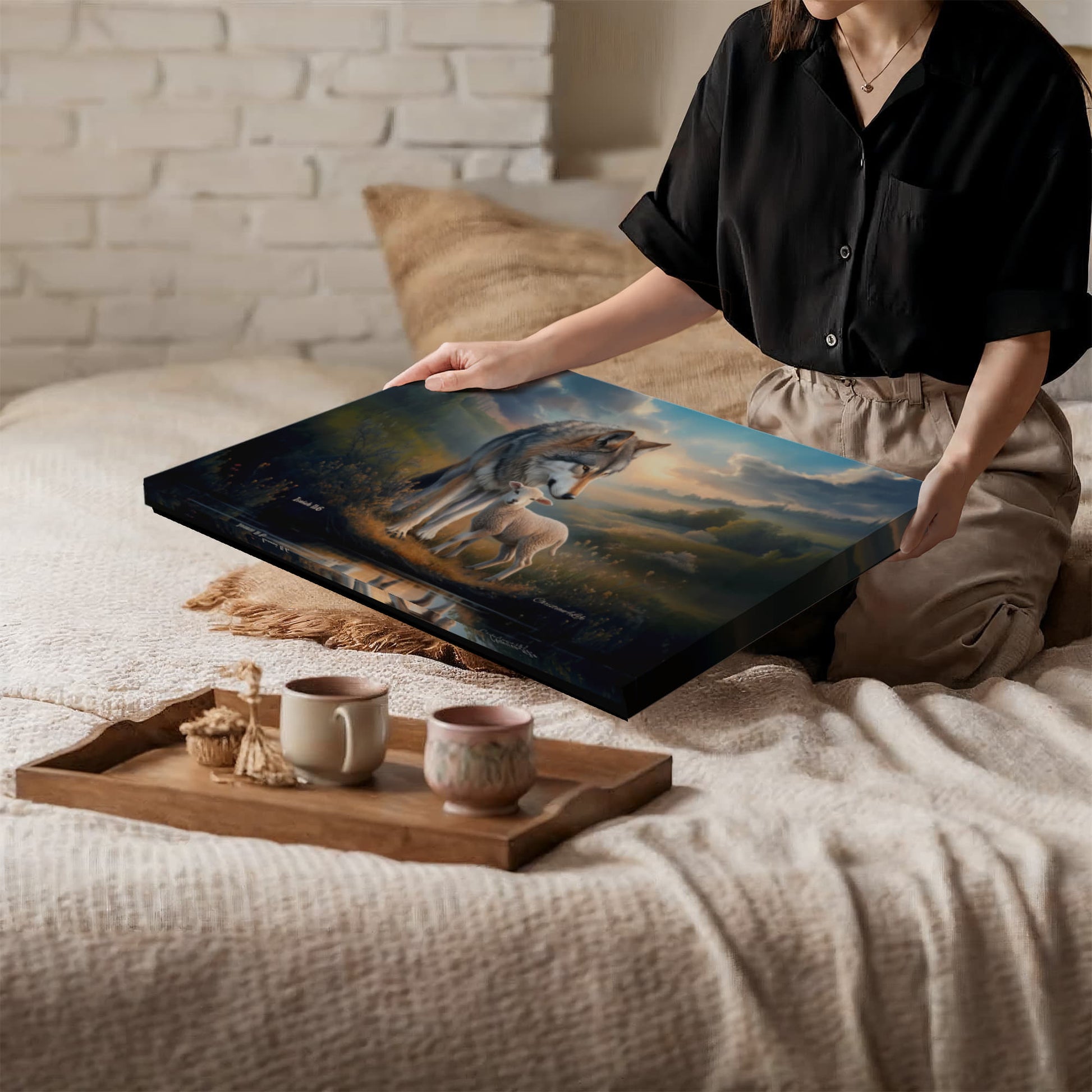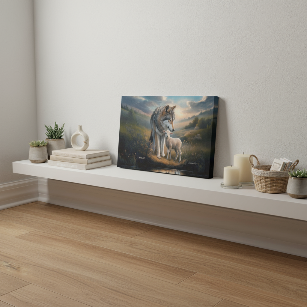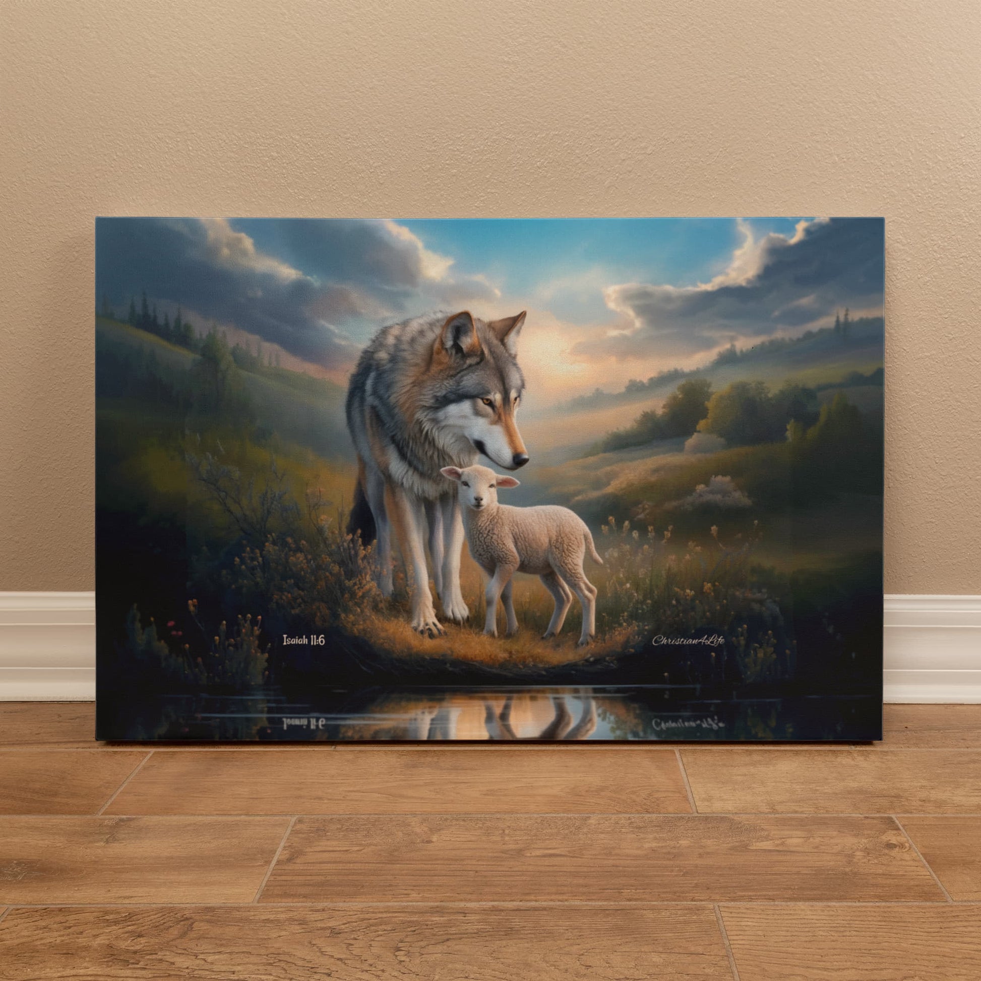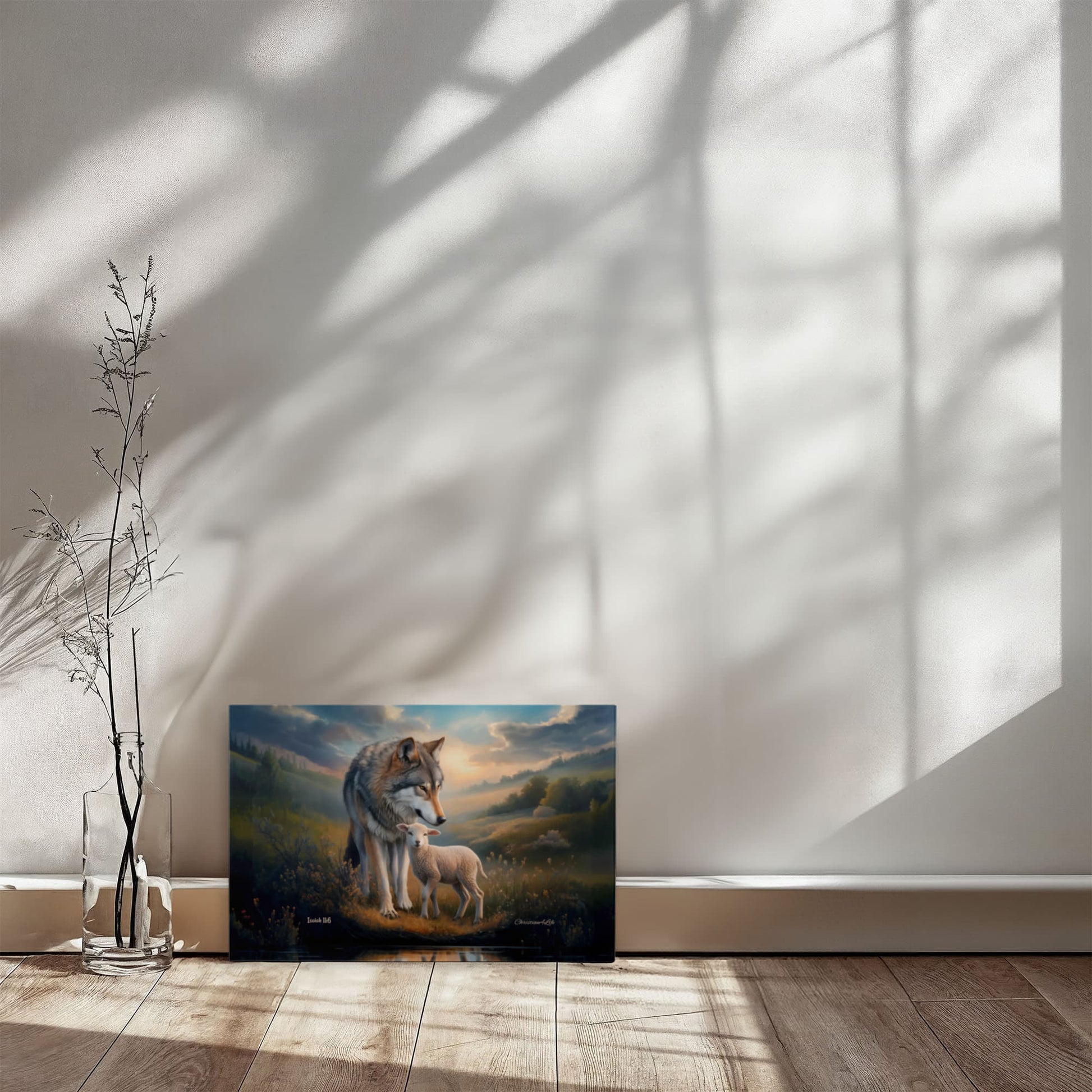 Wolf and Lamb Reflection, Christian Wall Art, Gallery Wrapped Canvas, Isaiah 11:6
